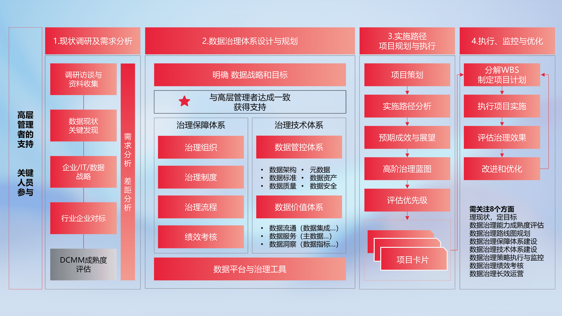 制定并执行统一的数据标准,,规范数据定义和格式,,,消除冗余和不一致性,,,,实现跨部门和跨系统的数据一致性,,,,为企业提供标准化的数据基础。。。。